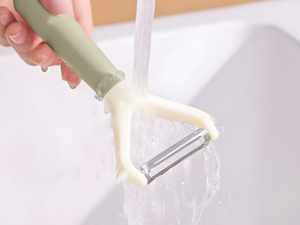 Škrabka se velmi snadno umývá a nezůstávají v ní zbytky jídla . Stačí ji opláchnout pod tekoucí vodou. Udržování v čistotě zabere jen chvilku.