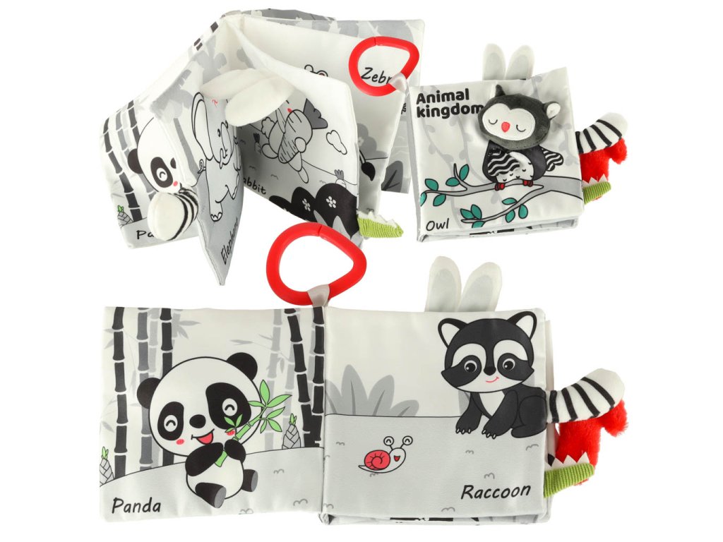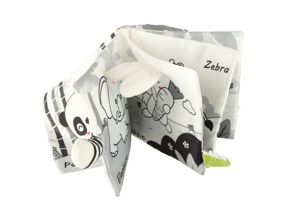 Kouzelná látková knížka s kontrastními vzory je skvělá pro děti, které právě začínají poznávat svět. Obrázky v kontrastních barvách jsou skvělým úvodem do světa zvířat.