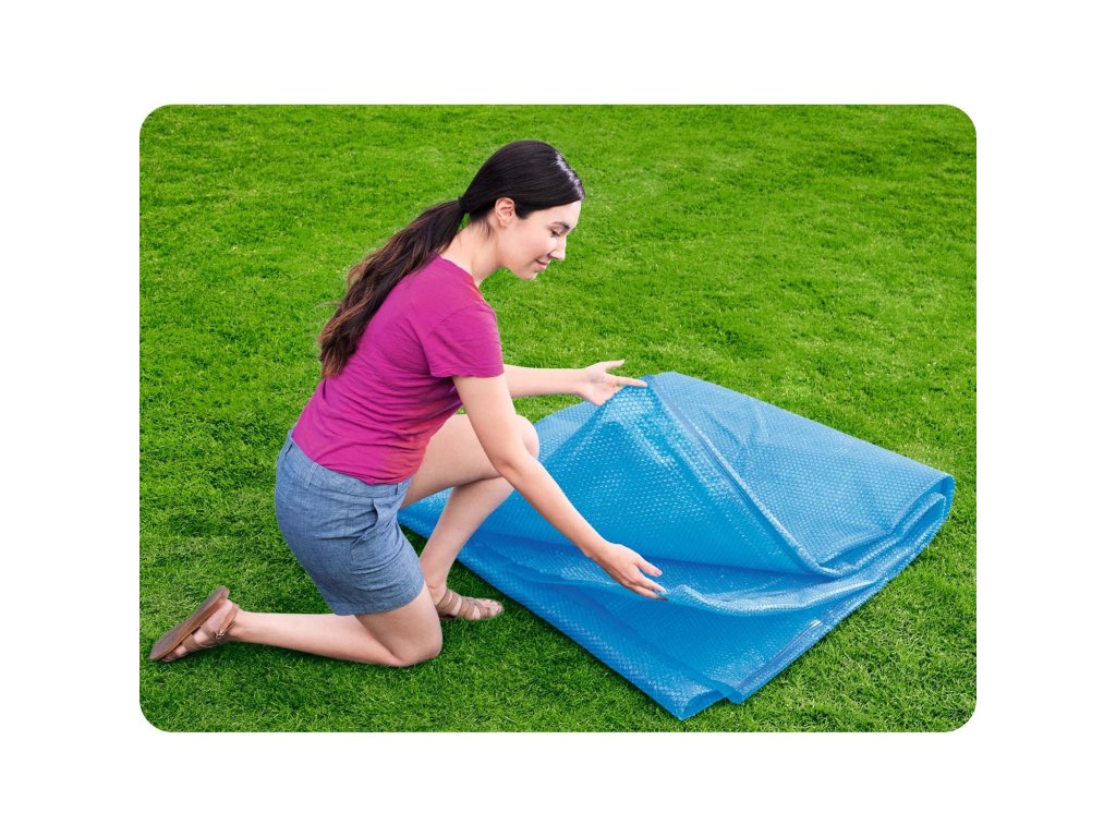 S víc než 15letou zkušeností značka Bestway přichází s řešením, které vám pomůže vychutnat si příjemné koupání i během chladnějších večerů. Solární pokrývka na bazény 457/427/396 cm je navržena tak, aby účinně udržovala teplotu vody, a její unikátní konstrukce s vzduchovými bublinkami minimalizuje tepelné ztráty. Užijte si teplou vodu, aniž byste museli neustále doplňovat energii!