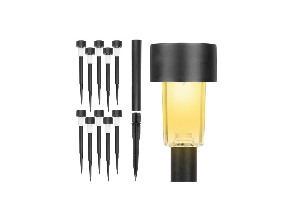zdarma - díky solárnímu panelu a baterii fungují 10x solární zahradní lampy výhradně na solární energii, tzn žádné kabely a žádné další náklady na elektřinu