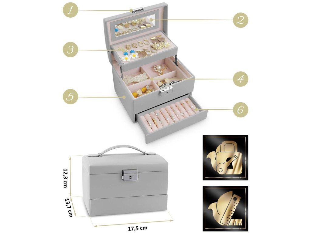 Objevte dokonalého pomocníka na ochranu a organizaci vašich šperků, který se stane nejen funkčním, ale i stylovým doplňkem vašeho domova! Naše uzamykatelná skříňka na šperky je navržena s ohledem na potřeby moderní ženy, která hledá krásu, kvalitu a praktičnost v jednom. S elegantním designem a pečlivým zpracováním se s ní budete cítit výjimečně každým dnem. Nechte se okouzlit její překrásnou barvou a moderním tvarem, který ji činí ideální pro dospělé ženy i dospívající dívky.