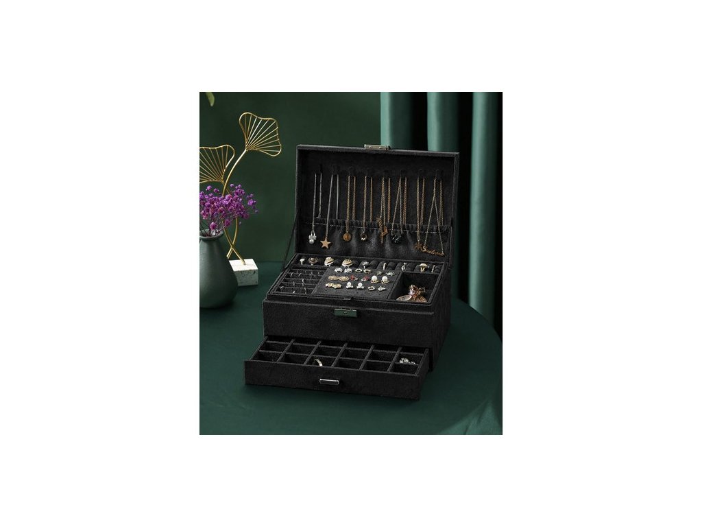 ELEGANTNÍ ČERNÉ POUZDRO / PROSTORNÁ ŠPERKOVNICA