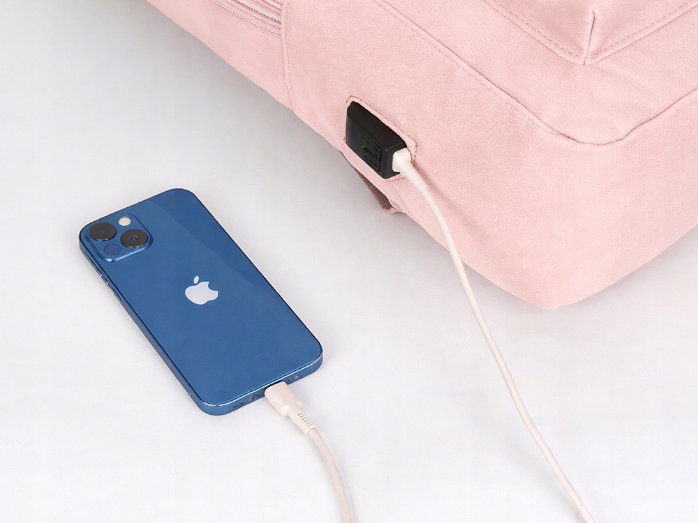 Integrovaný USB port umožňuje pohodlné nabíjení telefonu nebo jiných mobilních zařízení bez nutnosti vyndávat powerbanku.