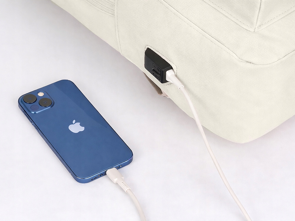 Integrovaný USB port umožňuje pohodlné nabíjení telefonu nebo jiných mobilních zařízení bez nutnosti vyndávat powerbanku.