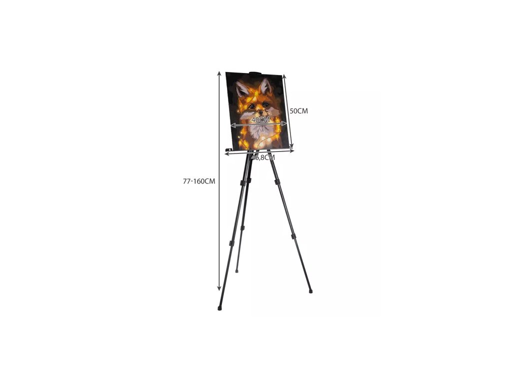 Stabilní malířský stojan v černé železné barvě je ideální doplněk pro každou maminku a dítě, které se rádi věnují výtvarné tvorbě. S jeho pomocí můžete snadno nastavit výšku od 77 do 160 cm, což umožňuje pohodlné malování jak sedícím, tak stojícím postojem. Tento produkt je součástí kategorie doplňkový prodej a výtvarné a kreativní sady.