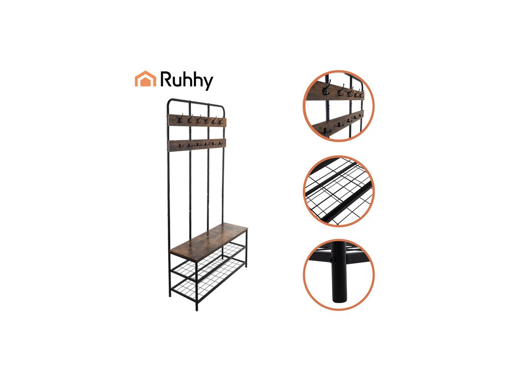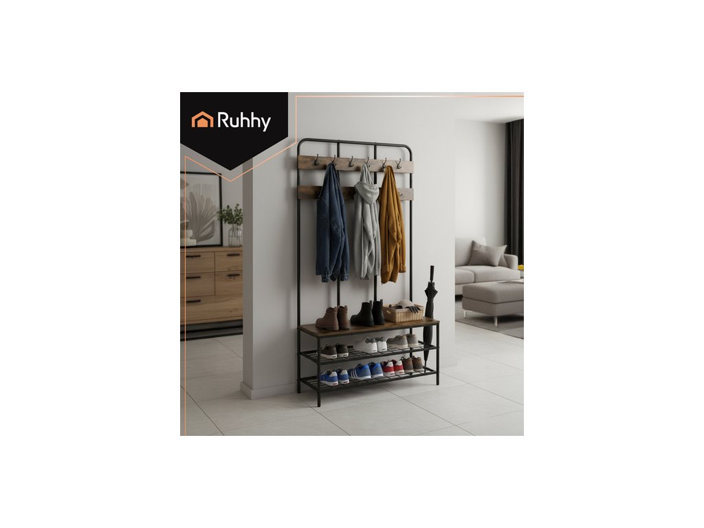 Police Ruhhy je dokonalou kombinací funkčnosti a designu – pomůže vám udržet uspořádané bundy, boty a doplňky a zároveň elegantně vypadá v jakémkoli interiéru. Robustní kovová konstrukce a dřevěné akcenty v loftovém stylu dodávají interiéru charakter a díky jednoduché montáži si budete moci užívat dokonale uspořádaný prostor během několika minut.
