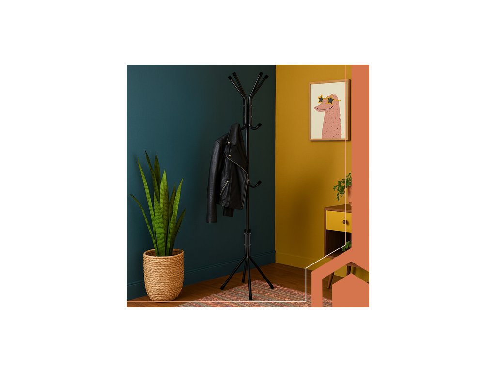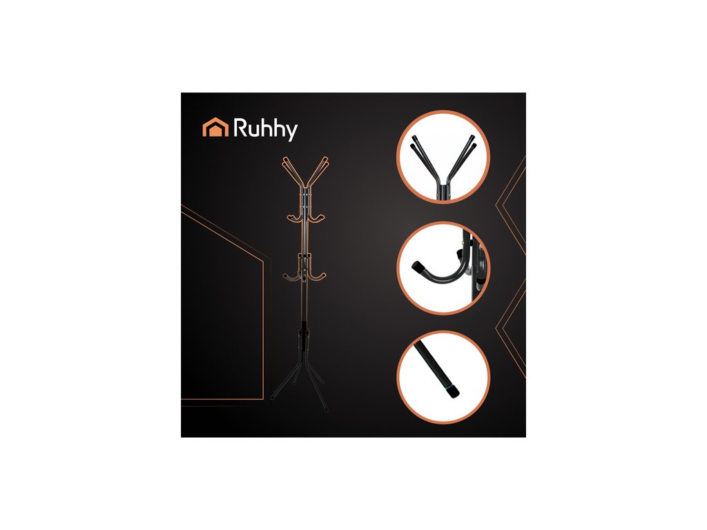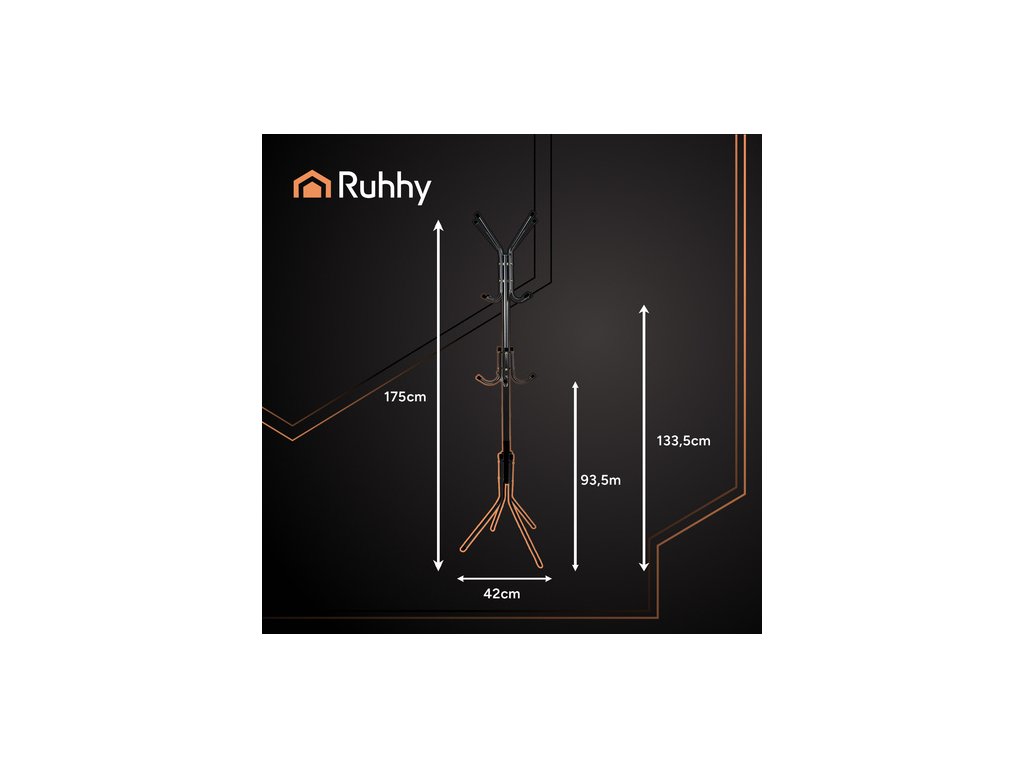 Věšák RUHHY je praktické a elegantní řešení, které se dokonale hodí do jakéhokoli interiéru – z chodby, přes ložnici, do kanceláře nebo čekárny . Díky třem úrovním zavěšení a stabilní konstrukci umožňuje stojan pohodlné uložení kabátů, bund, šál, tašek a mikin. – i bez smyček. Volně stojící a přenosný , nevyžaduje montáž na zeď ani speciální nářadí. Je to vynikající volba pro ty, kteří si cení funkčnost, mobilita a estetika .