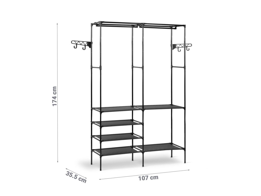 Objevte praktické a stylové řešení pro uskladnění vašich oděvů a doplňků s naším stojanovým věšákem Massido model MS-866 v elegantní černé barvě. Tento výrobek nejen skvěle vypadá, ale také přináší maximální funkčnost do vašeho domova. S výškou 174 cm a šířkou 35,5 cm se hodí i do menších prostor, zatímco jeho promyšlená konstrukce z něj činí ideální volbu pro každého, kdo hledá efektivní a elegantní způsob, jak organizovat oblečení a další potřeby.