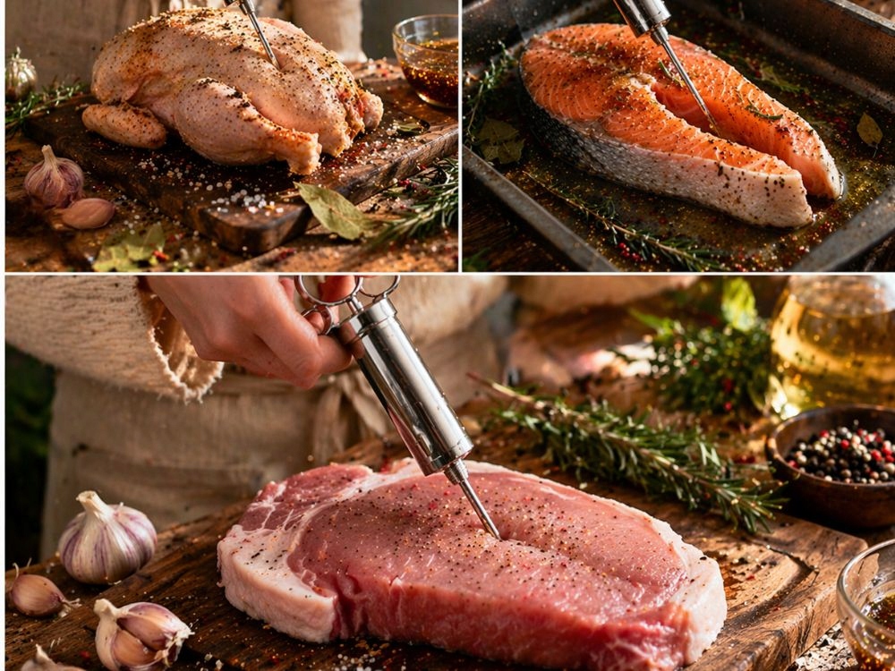 Na rozdíl od klasického potírání umožňuje injekční stříkačka vpichovat marinádu přesně tam, kde je to nejvíce potřeba. Díky tomu je maso uvnitř šťavnaté a aromatické a ryby si zachovávají svou jemnost a strukturu, přičemž zároveň získávají intenzivní chuť.