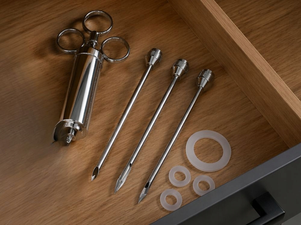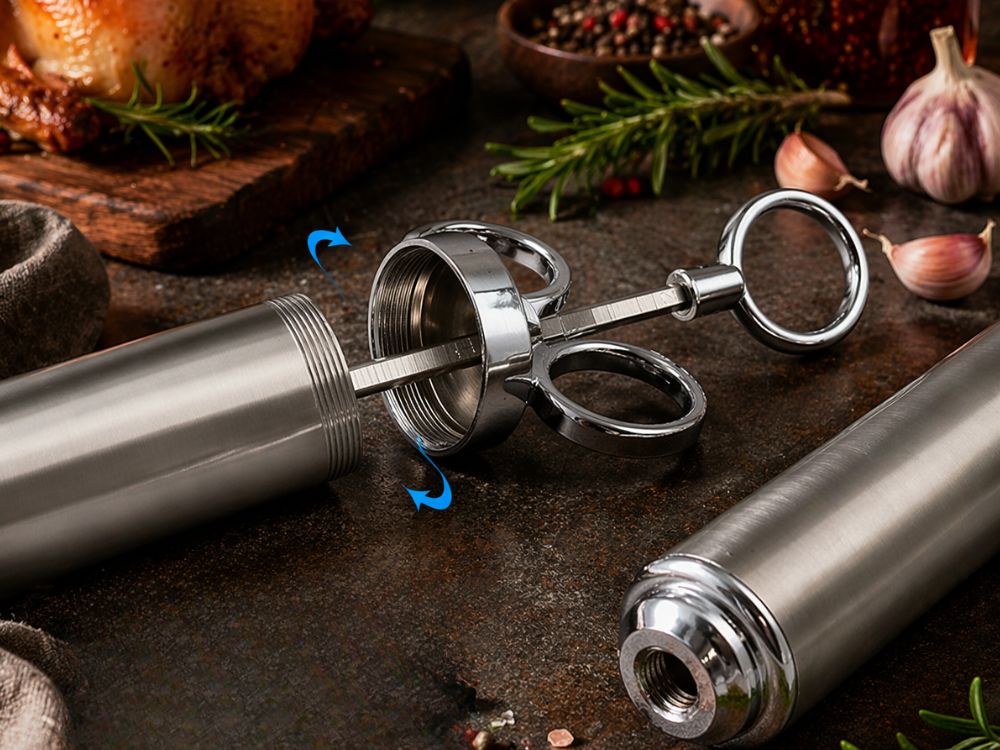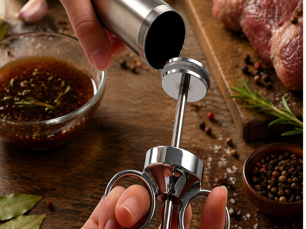 Pokud chcete, aby vaše pokrmy byly co nejšťavnatější a nejaromatickější, je tato injekční stříkačka na marinování řešením, které dělá obrovský rozdíl. Díky ní můžete koření vpravit přímo do masa nebo ryb, což umožňuje dosáhnout hluboké, intenzivní chuti, kterou nelze dosáhnout tradičním marinováním.