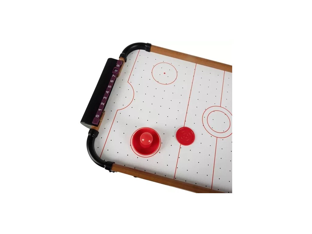 Arkádové hry jsou fantastickým způsobem, jak trávit čas zajímavým způsobem, a to jak pro děti, tak pro dospělé. Účinně odstraní nudu zejména v chladných či deštivých dnech a přinesou také řadu benefitů tělu i mysli. Mini verze oblíbeného vzdušného hokeje vám umožní užít si zábavu u vás doma a kdykoli. Sada na vzdušný hokej se skládá ze stolu, 2 odrážedel, 2 puků a 2 branek.