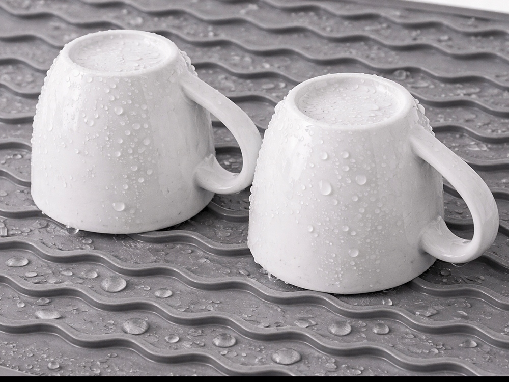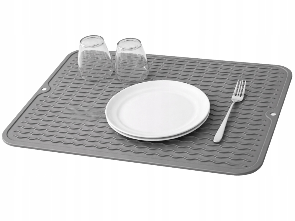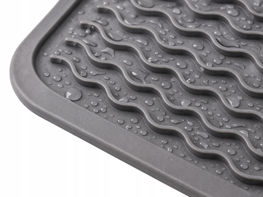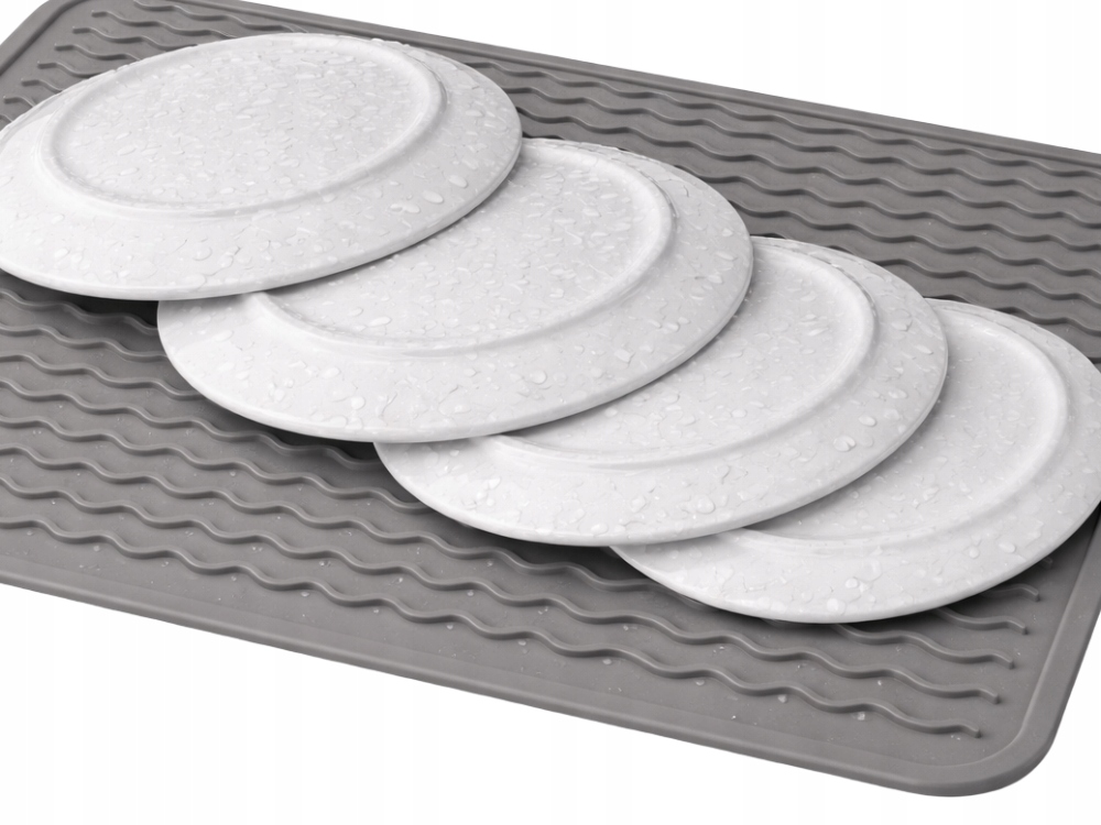 Podložka na sušení nádobí je praktický a moderní odkapávač na kuchyňskou desku, který usnadňuje každodenní práci v kuchyni. Díky speciální vlnité struktuře účinně odvádí vodu a umožňuje nádobí rychleji vyschnout. Je vyrobena z odolného a pružného materiálu, dokonale se přizpůsobí povrchu a nezabírá mnoho místa.