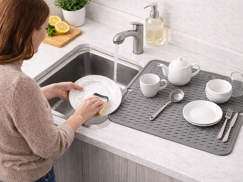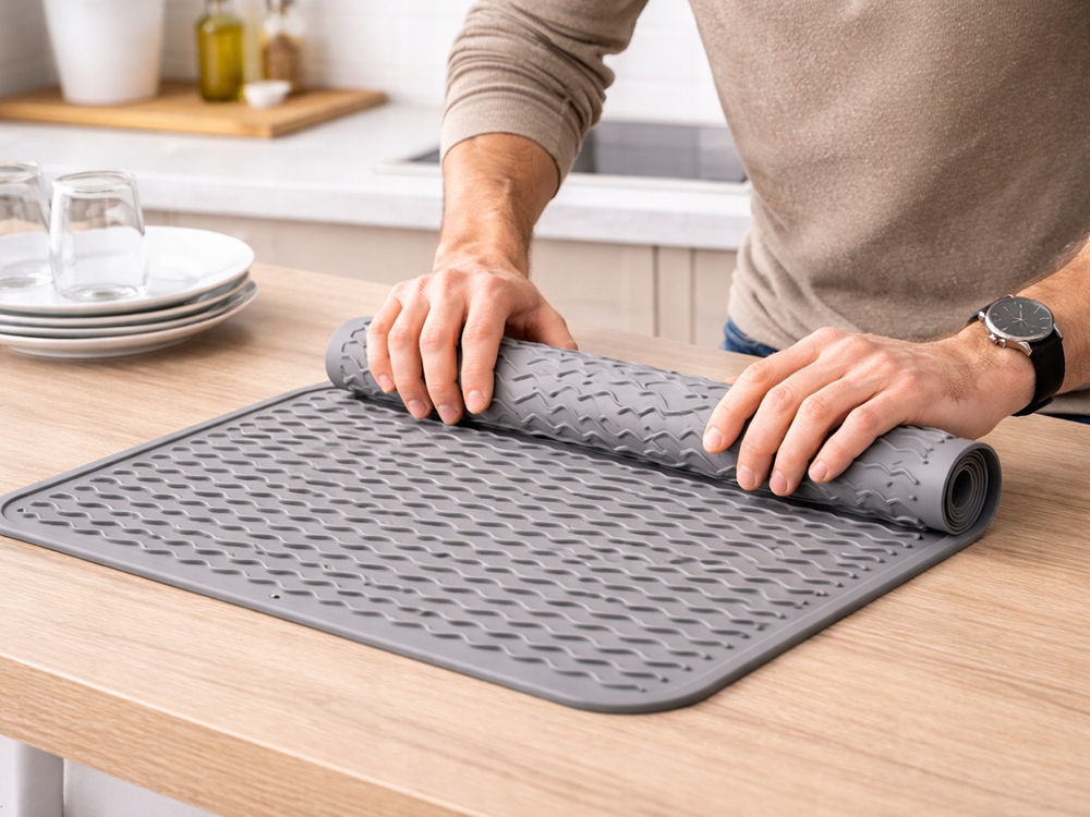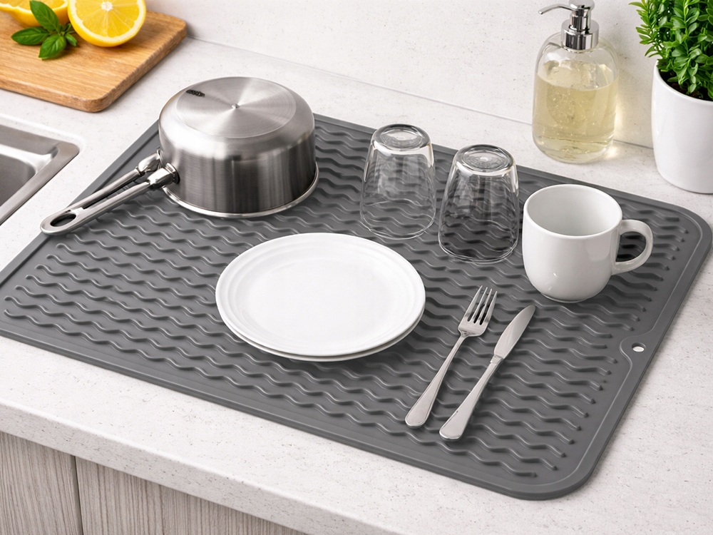 Podložka na sušení nádobí se osvědčí v každé kuchyni – malé i velké. Je ideální pro ty, kteří si cení pořádku, pohodlí a estetiky, ale také pro ty, kteří nemají místo na velký odkapávač. Je to skvělé řešení do bytů, kanceláří, letních domků nebo karavanů.