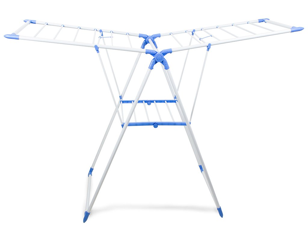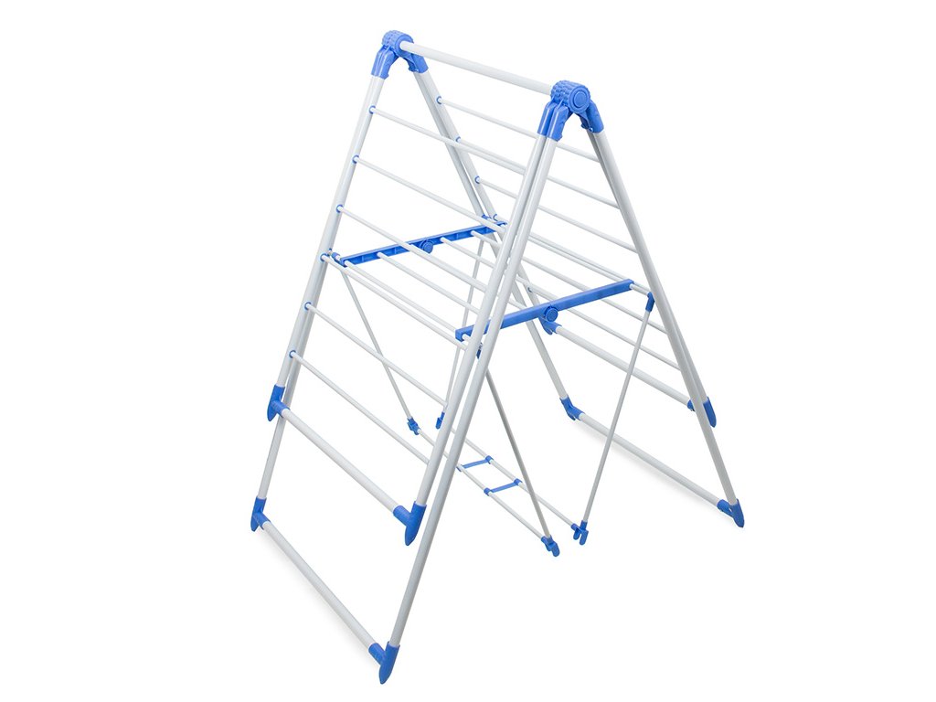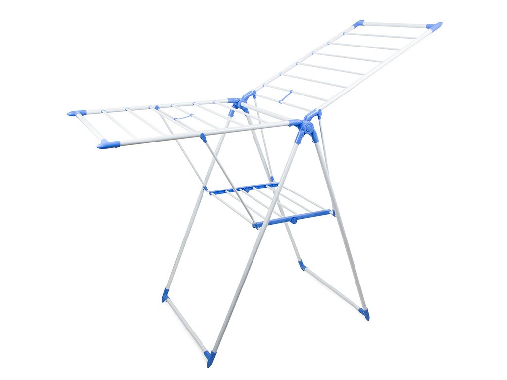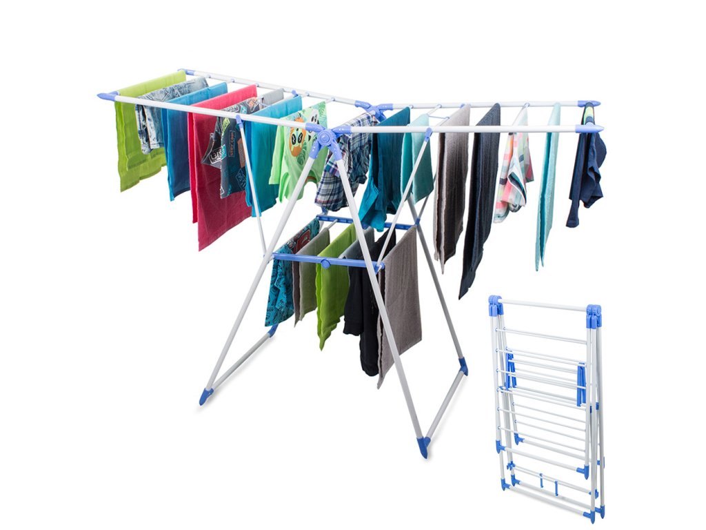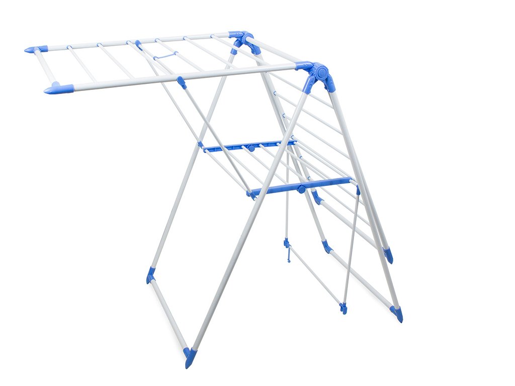 Velký, velmi prostorný sušák na prádlo, umožňuje pověsit přibližně 11 běžných metrů prádla. Pevné tyče o průměru 1 cm se neohýbají a udrží velkou váhu mokrého prádla. Sušák je vybaven 2 nezávislými nastavitelnými křídly se 7 pevnými tyčemi na každém z nich a policí vybavenou 6 tyčemi.