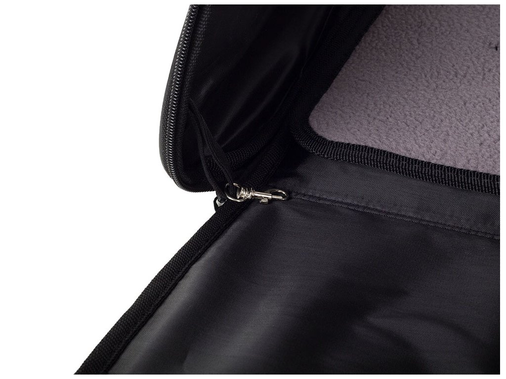 Je vybavena pohodlnými držadly pro přenášení v ruce. Má také účinný ventilační systém prostřednictvím dvou velkých, prodyšných mřížek a okénka. Taška má dva zipy, které umožňují rychlé otevření nebo uzavření, což umožňuje pohodlné umístění zvířete. Uvnitř tašky je také karabina, ke které lze připevnit obojek nebo postroj. Transportní taška má navíc kapsu na různé drobnosti a snadno vyjímatelnou vložku.