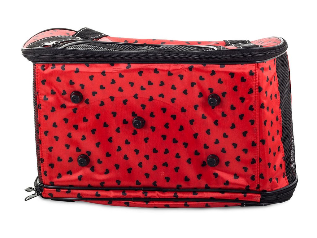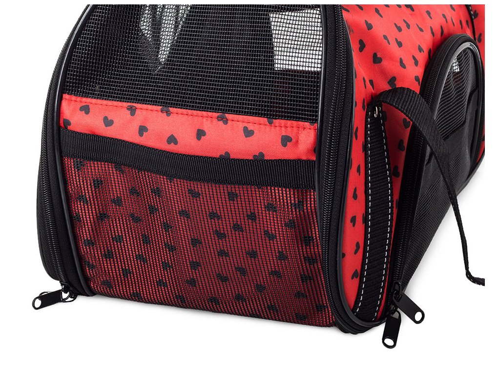 Je vybavena pohodlnými držadly pro přenášení v ruce. Má také účinný ventilační systém prostřednictvím dvou velkých, prodyšných mřížek a okénka. Taška má dva zipy, které umožňují rychlé otevření nebo uzavření, což umožňuje pohodlné umístění zvířete. Uvnitř tašky je také karabina, ke které lze připevnit obojek nebo postroj.