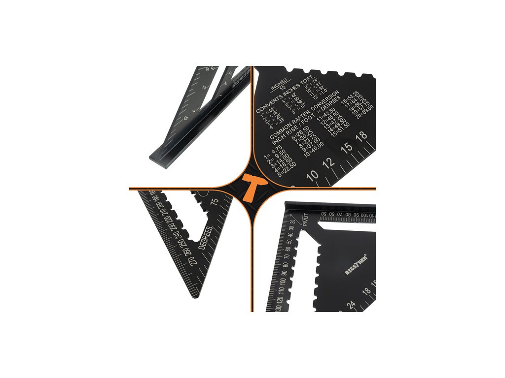 přesná měření – stupnice zajišťují odolnost a čitelnost, díky čemuž vždy si můžete být jisti, že změříte perfektní úhly