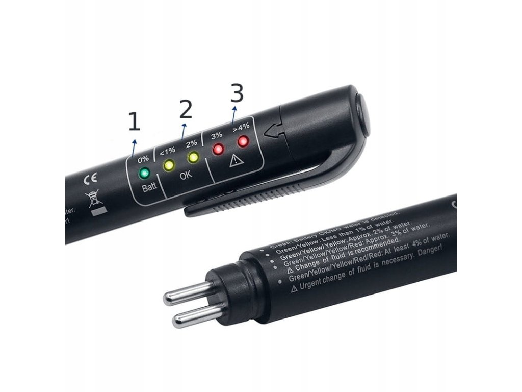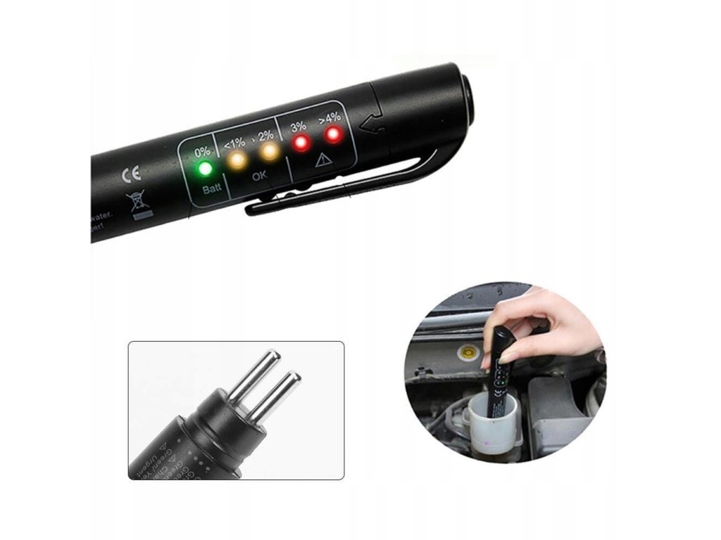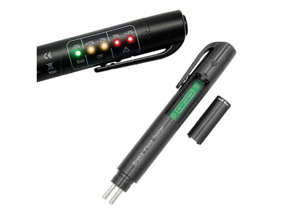 Udržte své vozidlo v perfektním technickém stavu a získejte tak pocit bezpečí na silnici s naším Testerem brzdové kapaliny s LED diodami. Tento praktický pomocník vám umožní rychle a přesně zjistit stav brzdové kapaliny ve vašem voze. Díky intuitivnímu systému LED a jednoduchému ovládání stačí jen ponořit hrot testeru do nádržky na brzdovou kapalinu. Získejte okamžité a jasné informace o obsahu vody v kapalině, což je klíčové pro vaši bezpečnost při jízdě.