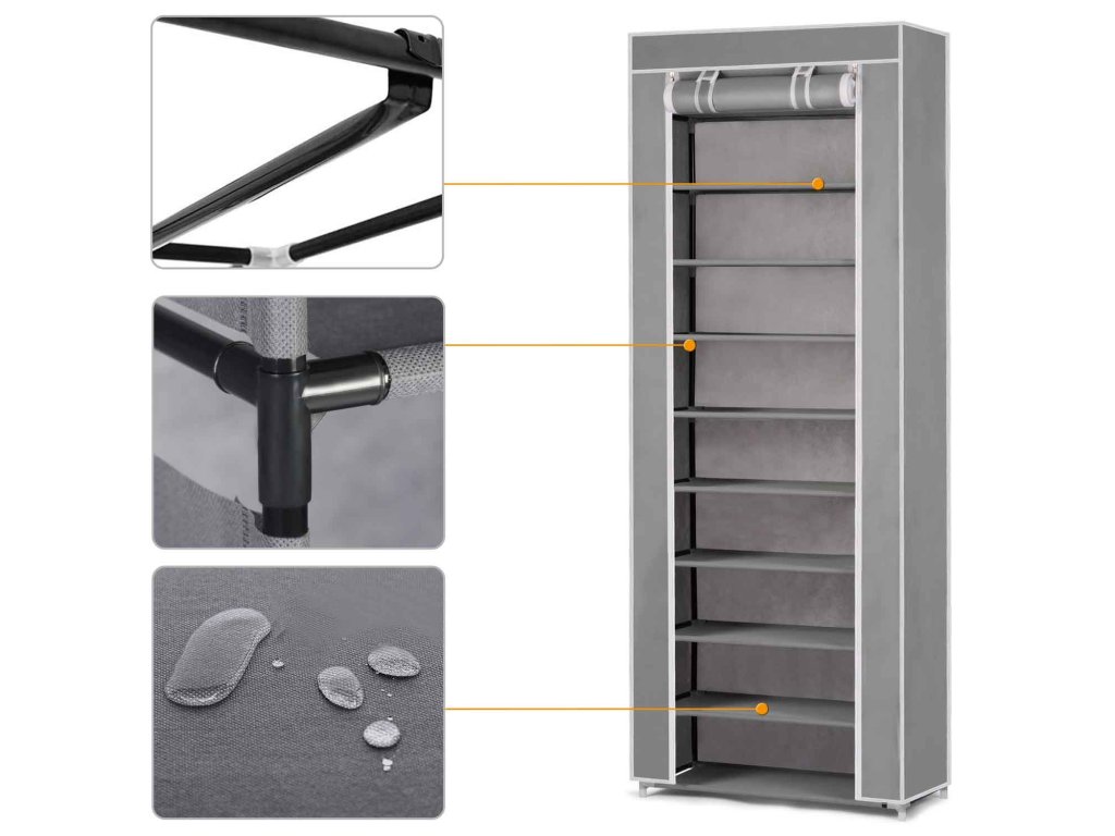 Vybavena robustním ocelovým rámem a 10 policemi se zvýšenou nosností, může skříň Massido unést vše, co potřebujete, aniž byste se museli obávat její stability. Praktické uzavírání na zip a snadná montáž činí tuto skříň ideálním řešením pro každého, kdo hledá efektivní a rychlé způsoby ukládání svých věcí. Nečekejte, až vám organizace skladování přeroste přes hlavu – pořiďte si šatní skříň Massido a užijte si volnost a pořádek iv těch nejmenších prostorech.