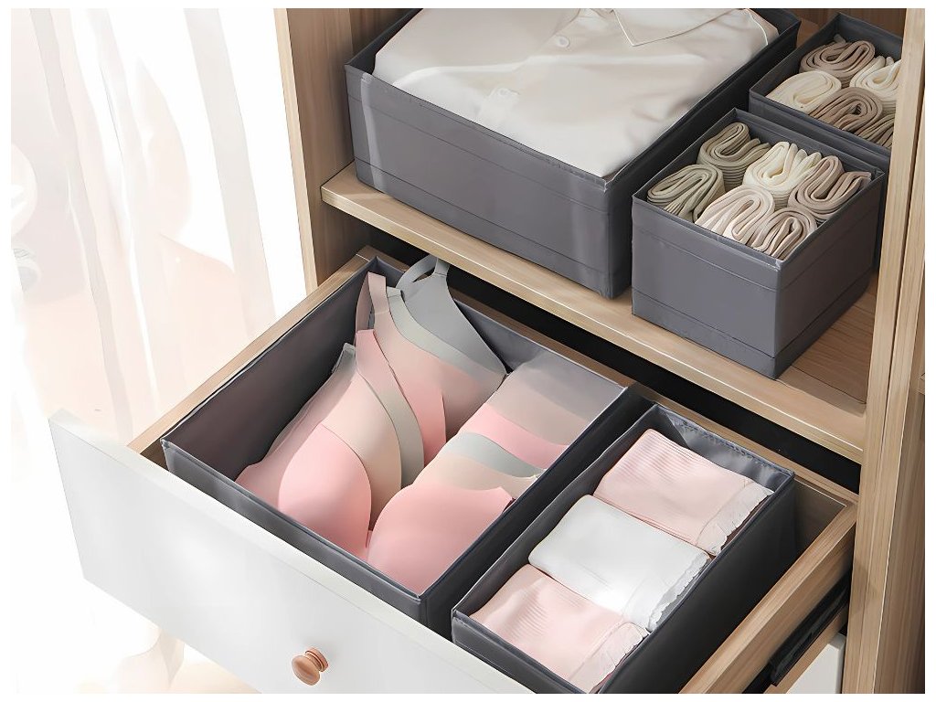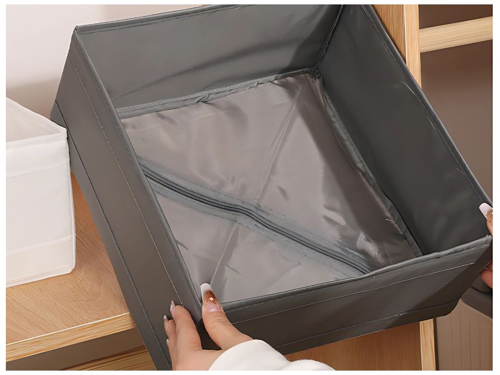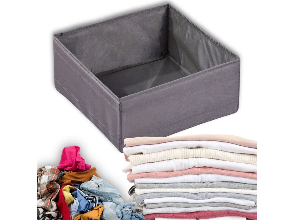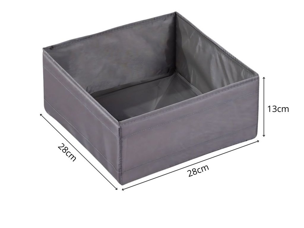 Tento funkční textilní organizér je ideálním řešením pro ty, kteří chtějí mít ve svém šatníku pořádek. S rozměry 28x28x13 cm je ideální pro ukládání prádla, doplňků a dalších drobných předmětů a pomáhá optimalizovat prostor v zásuvkách a na policích.