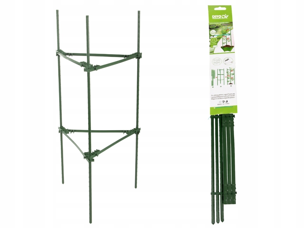 Opora DIVO je praktické řešení podporující správný růst rostlin pěstovaných v zemi. Trojúhelníková konstrukce zajišťuje stabilní oporu ze tří stran, díky čemuž rostliny udržují svislý růst a nerozpadají se do stran. Jedná se o pohodlné řešení, které pomáhá udržovat pořádek na záhonech a v zahradě.