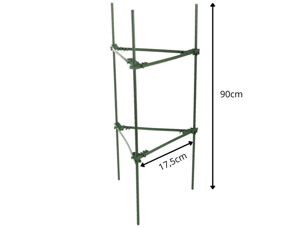 Trojúhelníková konstrukce zajišťuje rovnoměrnou oporu rostliny ze všech stran, což přispívá k její stabilitě a správnému růstu. Díky kompaktním rozměrům se opora dobře hodí pro zahradní rostliny, které vyžadují oporu, ale nepotřebují velké konstrukce.