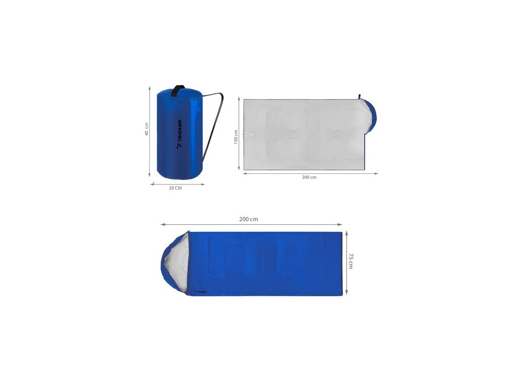 Turistický Spací Pytel 2v1 v modro-černé barvě je vyroben z 210T voděodolného polyesteru Ripstop. Jeho rozměry jsou 200/75 cm, což ho činí ideálním pro pohodlný spánek během vašich outdoorových dobrodružství. Tento spací pytel je součástí kategorií Doplňkový prodej, Sport a volný čas, Sport a turistika a Spacáky.