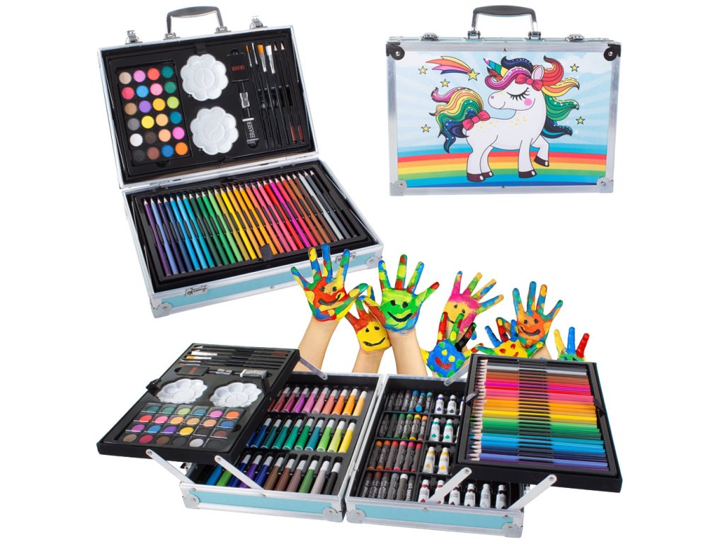 Kreslení a malování je velmi kreativní činnost, která rozvíjí představivost, ale k realizaci svých nápadů a jejich přenesení na papír jsou potřebné vhodné malířské potřeby. Sada obsahuje až 145 dílů.