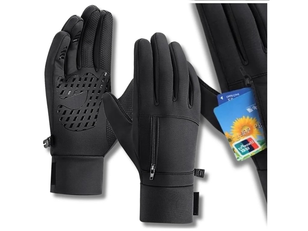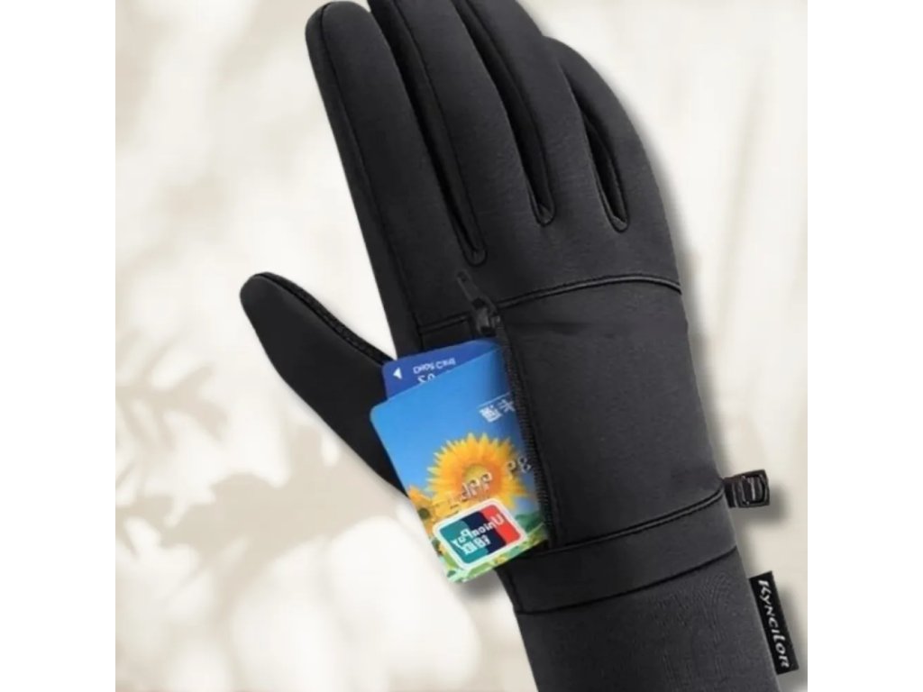 Pánské nepromokavé zateplené rukavice unisex, pohodlné a módní, s kvalitním zpracováním. Vyrobeny z polyesteru s pečlivou povrchovou úpravou. Mají kapsu na zip pro uložení kreditní karty nebo peněz. Jsou vhodné do každého počasí, dotykové a s protiskluzovou úpravou na vnitřní straně. **Parametry:**