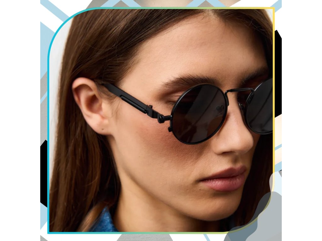 Brýle mají kulaté čočky s UV filtrem 400, který efektivně pohlcuje škodlivé UVA a UVB záření. Kovový rám v černé barvě dodává brýlím elegantní vzhled a je doplněn o černé čočky. Rozměry brýlí jsou: šířka skel 47 mm, délka nosníků 132 mm a šířka rámečku 139 mm.