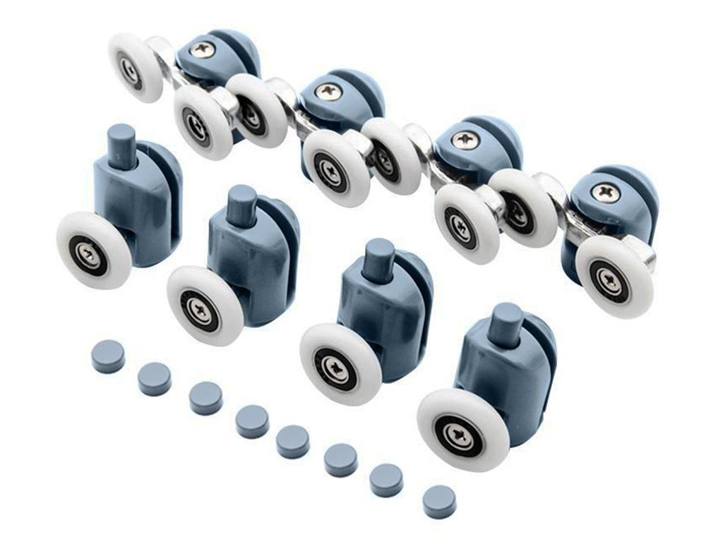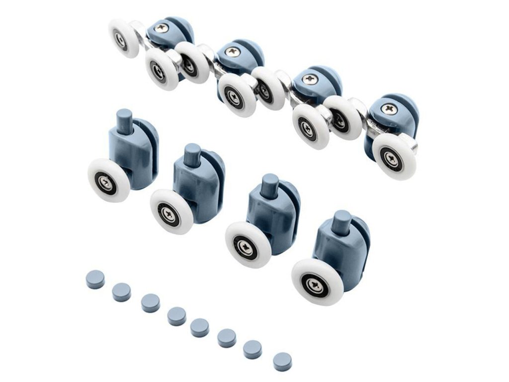 Nabízená sada obsahuje celkem osm sprchových koleček s krytkami. Čtyři horní válečky se dvěma kolečky a čtyři spodní válečky s jedním kolečkem.