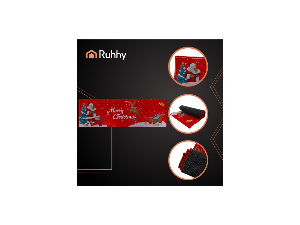 Vánoční koberec RUHHY 160×50 je rychlý způsob, jak si ve vaší kuchyni, chodbě nebo obývacím pokoji vytvořit teplou a útulnou atmosféru. Je hebký jako plyš, příjemný na bosé nohy a zároveň praktický – chrání před studenou podlahou a dodává vašemu interiéru eleganci.