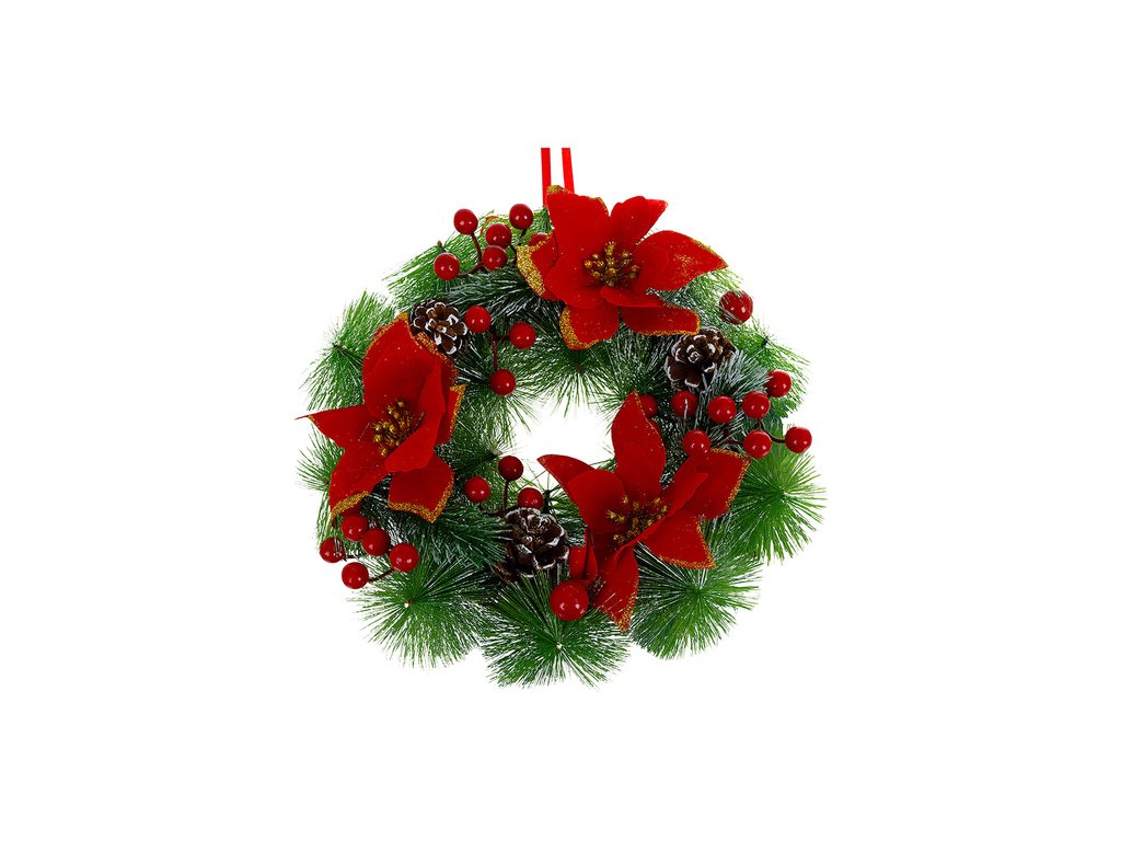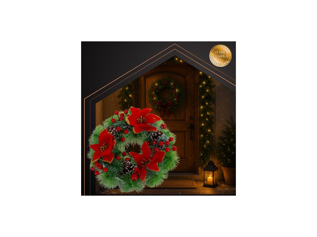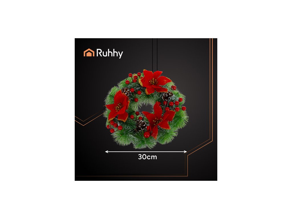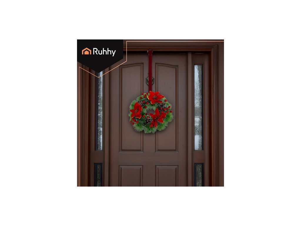Věnec RUHHY okamžitě přináší kouzlo Vánoc - Jednoduše ji zavěste na dveře nebo položte na stůl a bez námahy vytvořte teplou vánoční atmosféru. Husté uspořádání zelených větviček, červených bobulí a šišek vypadá realisticky, a přesto nevyžaduje žádnou údržbu. Je to dekorace, která potěší hosty a dodá vašemu interiéru eleganci během svátků.