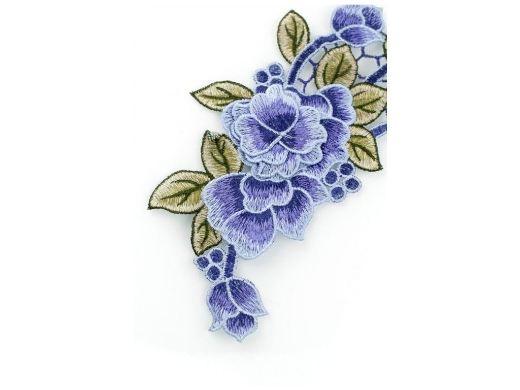 Tato nášivka s květinovým motivem je vyrobena s precizností a pečlivostí, což jí dodává originální a ženský vzhled. Její rozměry jsou 30 cm na délku a 16 cm na šířku, což ji činí dostatečně velkou na to, aby byla viditelnou a výraznou součástí vašeho outfitu.