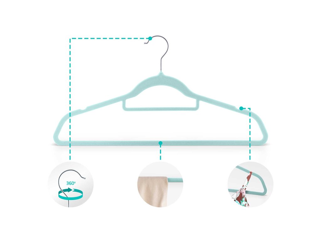 Naše Massido velurová ramínka s otočným ocelovým háčkem nabízejí snadný přístup k vašim oděvům a praktickou příčnou tyč pro zavěšení kalhot, šátků a kravat. Každé ramínko je navrženo tak, aby bylo nejen estetické, ale také mimořádně odolné a robustní, což zajistí, že se vaše oblíbené kusy oblečení deformují, ale zůstanou ve skvělé kondici.