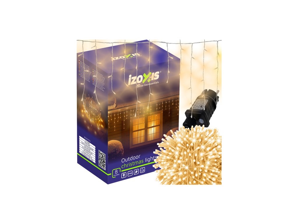 Díky 500 teple bílým LED diodám a délce 22,5 metrů vytvoří tato světla od IZOXIS jedinečnou atmosféru plnou světla - jak ve vašem obývacím pokoji, tak na balkoně, terase nebo fasádě. Osm režimů osvětlení, včetně efektu záblesku, vám umožní přizpůsobit světlo vaší náladě. - od jemného třpytu po opravdovou vánoční hostinu!