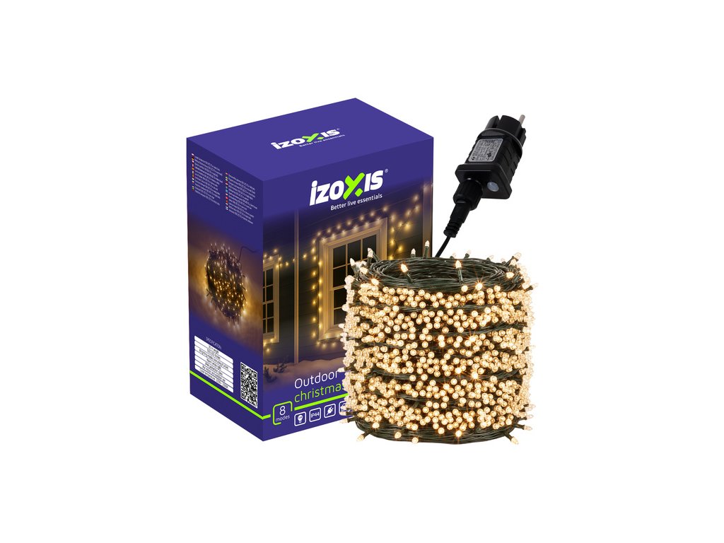 Díky 500 teple bílým LED diodám a délce 35 metrů, tyto lampy od IZOXIS vytvoří jedinečnou atmosféru plnou světla - jak ve vašem obývacím pokoji, tak i na balkoně, terase nebo fasádě. 8 režimů osvětlení, včetně efektu blesku, vám umožní přizpůsobit světlo vaší náladě - od jemného třpytu po opravdovou vánoční hostinu!