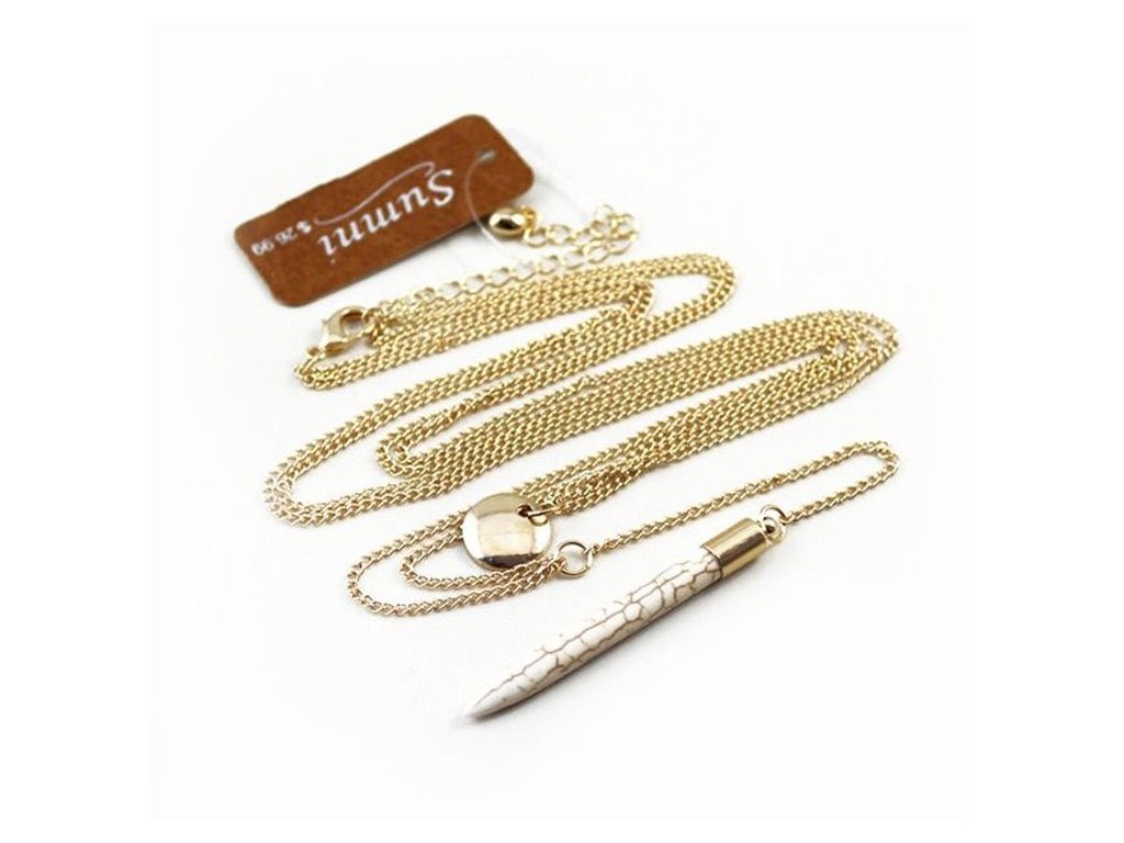 Ukažte svůj jedinečný styl s tímto vícevrstvým náhrdelníkem, který je k dispozici ve zlaté nebo stříbrné variantě. Tento náhrdelník je zdoben podlouhlým kamenem, který dodává jeho klasickému designu nádech elegance a sofistikovanosti. Jeho krásný design dokonale podtrhuje přirozenou krásu a noblesu ženy, což ho činí ideálním doplňkem pro elegantní i každodenní stylizace.