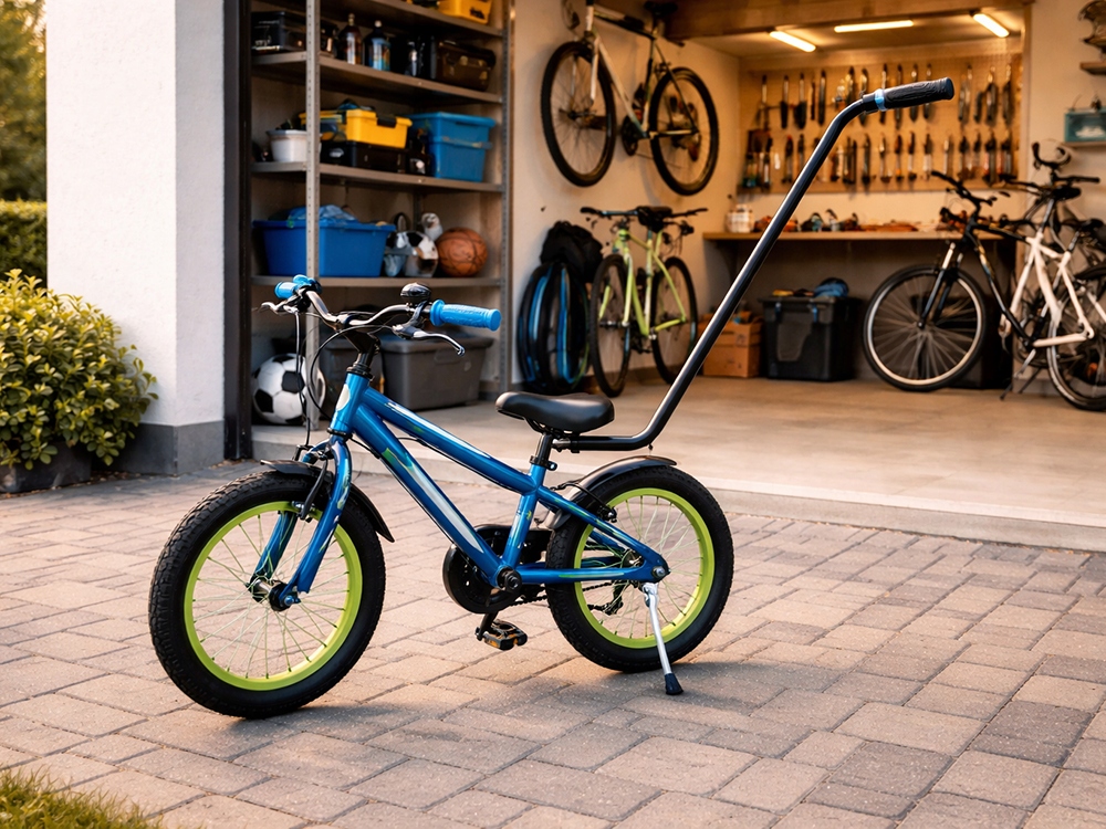 Držadlo pro výuku jízdy na kole pro děti je praktické a bezpečné řešení, které podporuje dítě při prvních pokusech o samostatnou jízdu.
