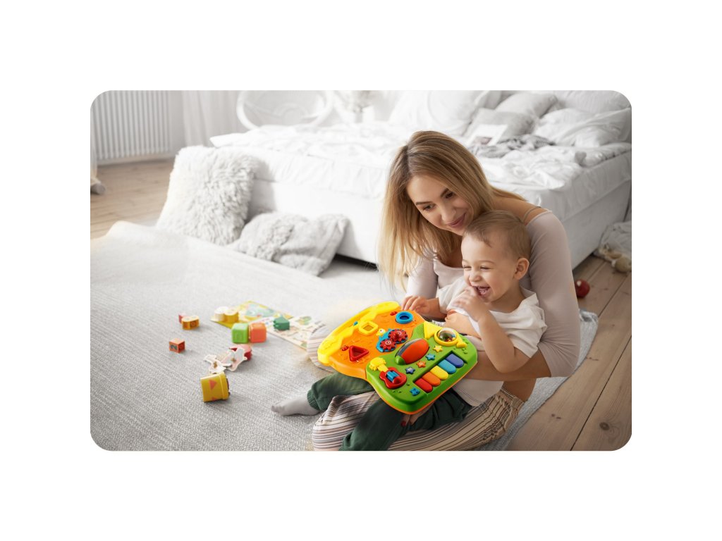 Tento výukový produkt se pyšní možností rychlé a snadné montáže a jeho prvky hrají a svítí, což zaručuje unikátní zážitek pro vaše dítě. S vypínatelnou funkcí zvuku a plynulou regulací hlasitosti si můžete být jisti, že jeho používání nebude rušit klidnou atmosféru domova. Nechte svůj přírůstek, ať si užívá zábavu s odnímatelným panelem, který slouží nejen jako interaktivní tabule, ale také jako rozšíření jeho fantazie a kreativity.