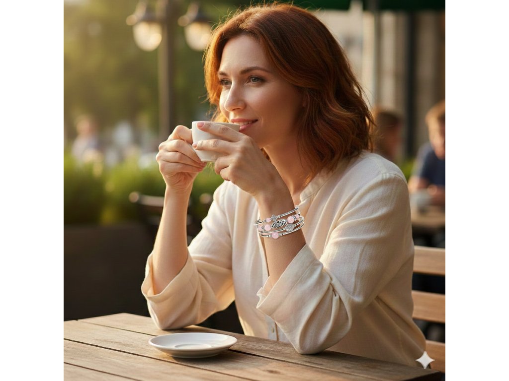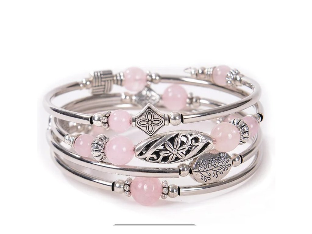 Wrap Náramek Esperanza Jaspis Zebra růžový je stylový vícevrstvý doplněk v etno stylu, který kombinuje jemnost růžového kamene s propracovanými kovovými detaily. Díky flexibilnímu designu se náramek vrstva po vrstvě vine kolem zápěstí a okamžitě se mu přizpůsobí. Je vyroben z vysoce kvalitních materiálů, které nedráždí pokožku, neobsahují nikl ani olovo a jsou odolné proti černání.