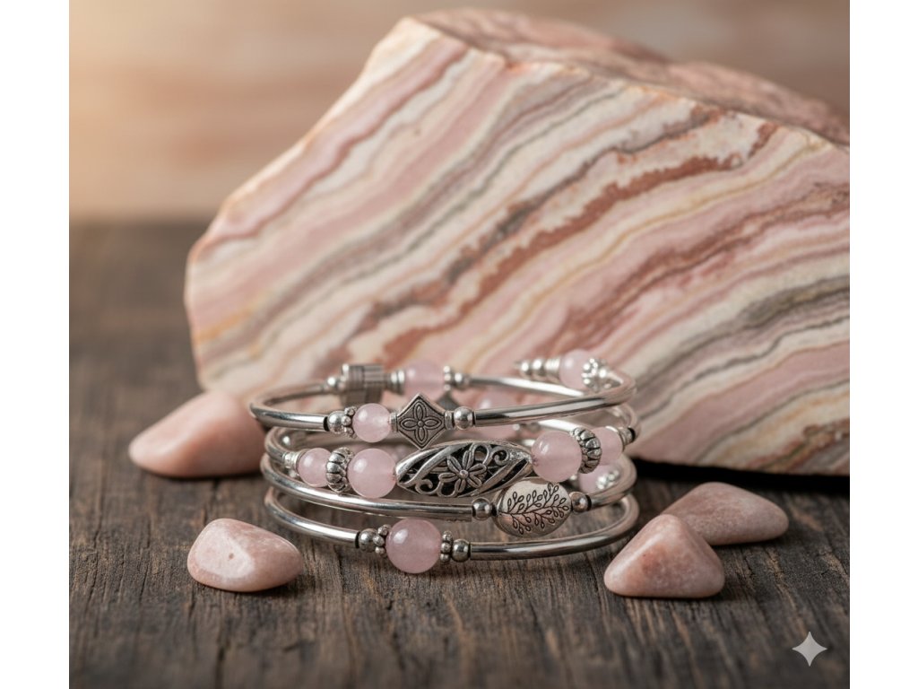 Jaspis Zebra v růžovém odstínu je kamenem emocionální rovnováhy a životní energie. Pomáhá překonávat apatii, dodává odvahu k řešení problémů a vnáší do života pocit bezpečí a optimismu. Svou jemnou barvou symbolizuje lásku a soucit, díky čemuž je ideálním doplňkem pro každodenní povzbuzení mysli.