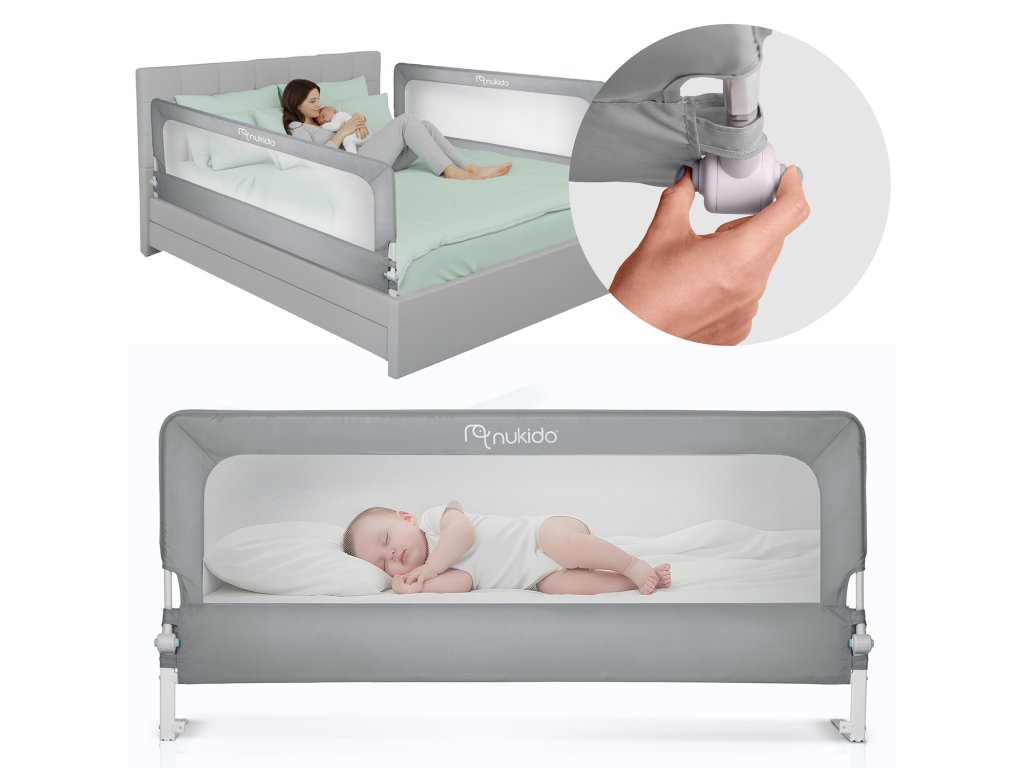 Máte obavy o bezpečnost svého dítěte během spánku? Přeměňte každou noc v bezstarostný odpočinek s naší bezpečnostní zábranou na postel Nukido! Zajistěte svému drobečkovi klidné a chráněné prostředí, i když přechází z postýlky do větší postele. Tato šedá zábrana se stane vaším neviditelným pomocníkem, který bdí nad spánkem vašeho dítěte, a vám tak dopřeje zaslouženou úlevu.