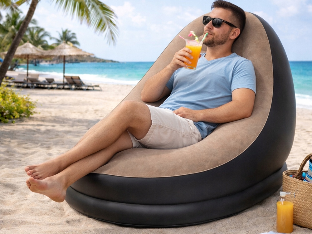 Změňte prostor ve svém pokoji a přidejte pohodlí a trochu zábavy s nafukovacím křeslem s podnožkou. Jedná se o jedinečnou kombinaci pohodlí a moderního designu, která se skvěle hodí jak do domu, tak na terasu nebo na dovolenou.