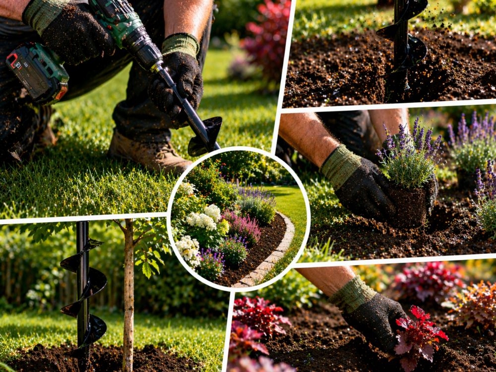 Místo ztrácení času ručním kopáním můžete za krátkou dobu vyvrtat i několik desítek otvorů . To je obrovská úleva, zejména při výsadbě většího množství rostlin.