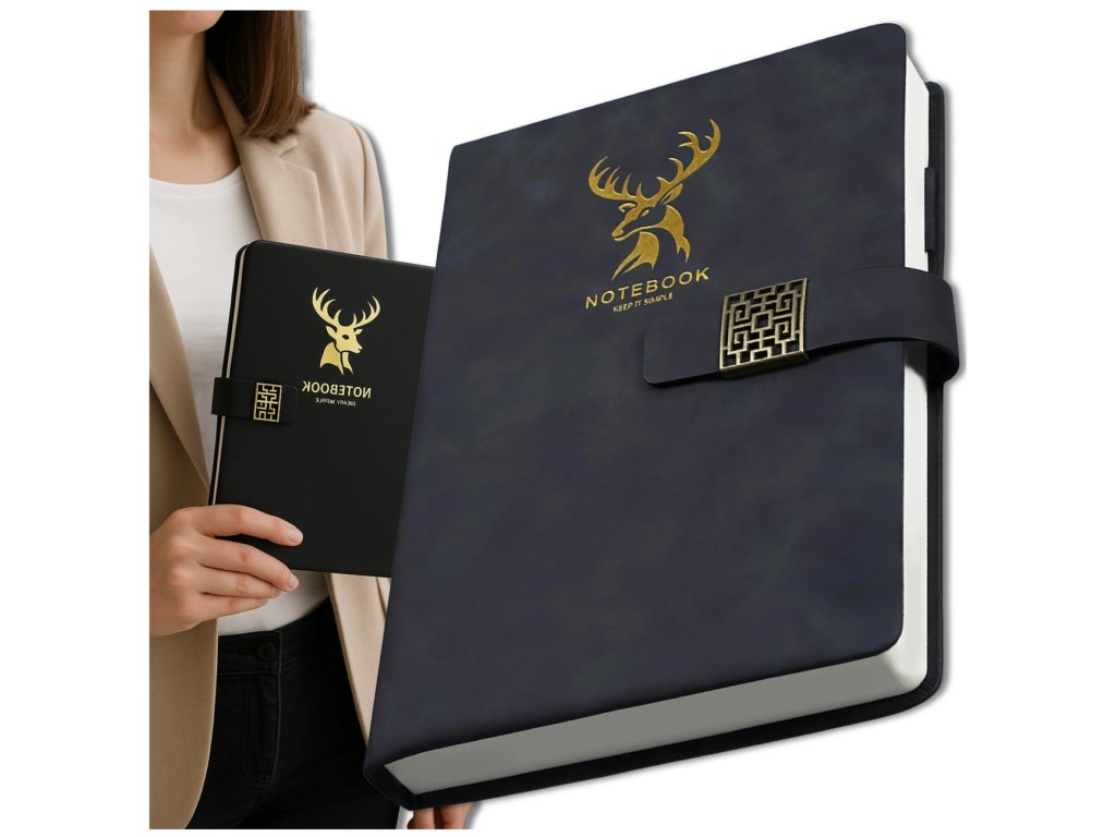 Toužíte po dokonalém spojení elegance a praktičnosti pro vaše každodenní poznámky a plánování? Užijte si pocit luxusu pokaždé, když sáhnete po tomto elegantním černém zápisníku A5 s pevným zapínáním. Tento zápisník, diář, A5 není jen obyčejný sešit, ale stylový doplněk, který podtrhne vaši profesionalitu, ať už jste v kanceláři, ve škole, nebo si vedete osobní deník. Jeho design s pevným obalem z umělé kůže, zdobeným zlatým potiskem jelena a nápisem „KEEP IT SIMPLE“, zaručuje, že budete mít vždy po ruce sofistikovaný nástroj pro organizaci svých myšlenek.