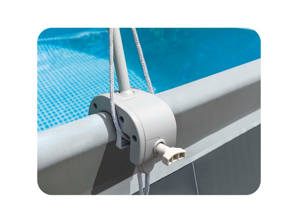 S montáží tohoto markýzy si nemusíte dělat starosti. Díky intuitivnímu systému upevnění pomocí čtyř spon si ji snadno nastavíte podle svých potřeb. Je kompatibilní se všemi prostornými bazény Prism Frame, Oval a Ultra XTR Rectangular (kromě rozměru 9,75 x 4,88 x 1,32 m) a také s kulatými bazény o průměru 3,05 m a 3,66 m. Už žádné starosti s horkem nebo větrem - užijte si bezstarostné chvíle v bazénu!