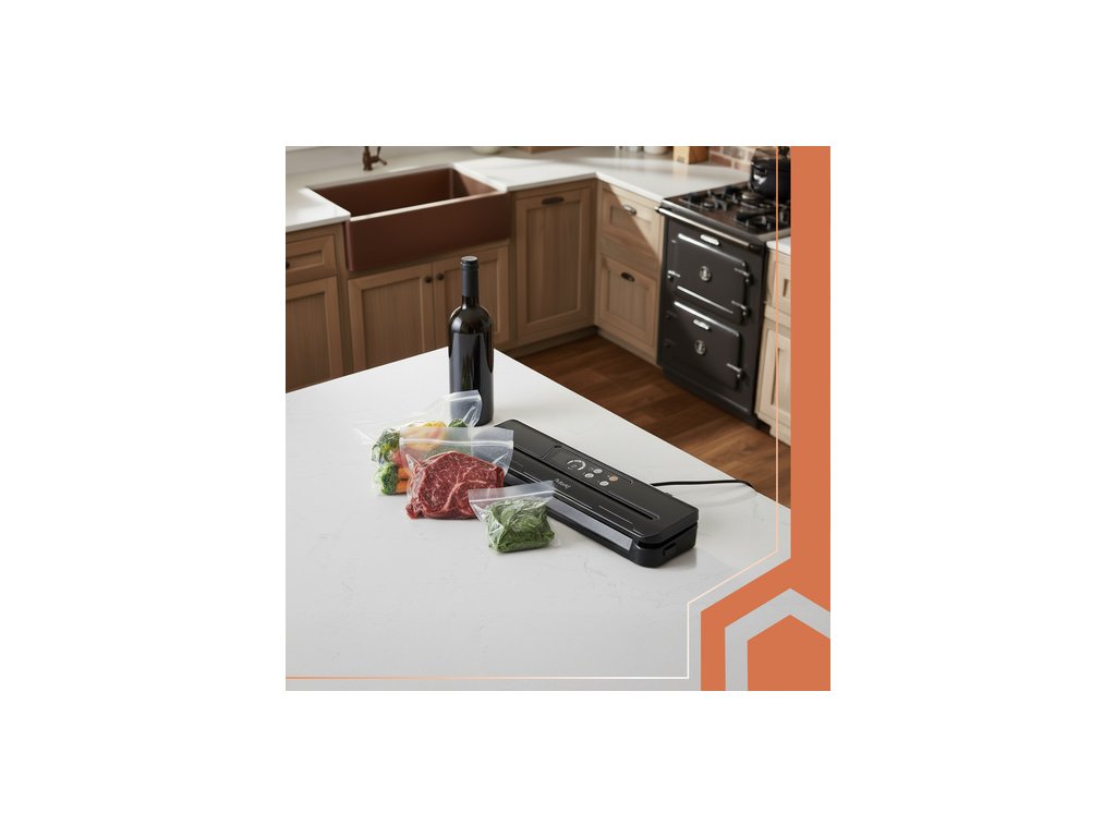 Objevte zařízení, které zkrátí dobu balení na polovinu a zachová chuť potravin až 5krát déle. Vestavěný posuvný nůž umožňuje rychlé a rovnoměrné stříhání fólie bez nůžek a Výkon 110 W a sací výkon 80 kPa Zaručují těsné a profesionální utěsnění, stejně jako v restauraci připravené metodou sous vide. Ideální pro maso, zeleninu, sýry a marinované pokrmy – protože čerstvost si zaslouží nejvyšší úroveň.
