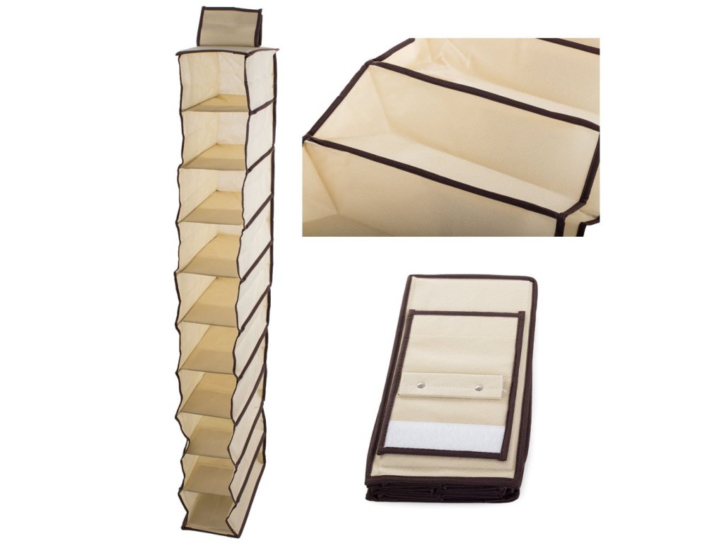 Závěsná police efektivně ušetří místo ve vaší šatní skříni. Deset úrovní polic vám dává možnost libovolně třídit oblečení a přitom nezabírá mnoho místa. Organizér udrží vaše oblečení v pořádku a dokonale ochrání vaše oblečení a lůžkoviny před prachem a dalšími vnějšími vlivy.