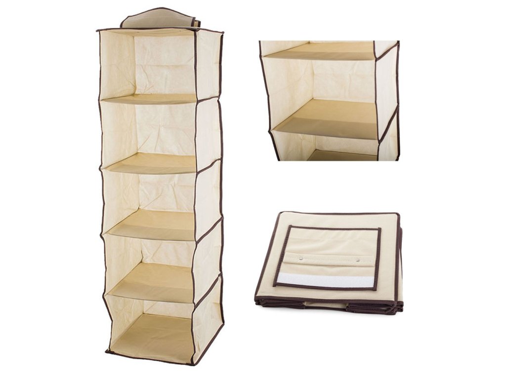Závěsná police efektivně ušetří místo ve vaší šatní skříni. Pět úrovní polic vám dává možnost libovolně rozdělit oblečení , přičemž zabírá málo místa.